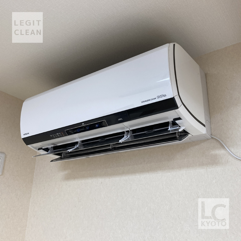 本日も引き続き、京都市北区の福祉施設さまへ【お掃除機能付きエアコンの高圧洗浄】にお伺いしました。