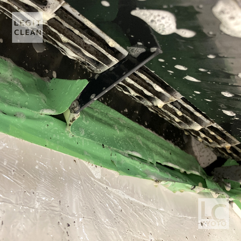 分解後、養生とカバーを被せて高圧洗浄。洗った部品を元通りに組み立てて施工完了です。